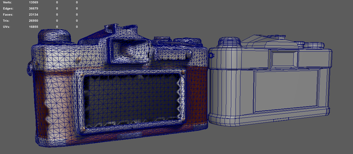 When converting the Meshy model into a game-ready asset, I initially attempted to use Make Live to retopologize the mesh. However, the model’s poor topology made it difficult to draw clean quads. To solve this, I used the Meshy model as a visual reference to match the correct size and proportions while rebuilding the geometry manually. I also removed unnecessary elements generated by Meshy to better match the original prompt of creating a low-poly vintage camera.