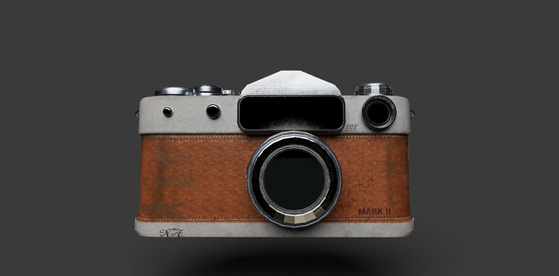 Started with an AI-generated base mesh from Meshy AI (Meshy 4) using the prompt “low-poly vintage camera” and transformed it into a production-ready prop through retopology, material refinement, and lighting polish.