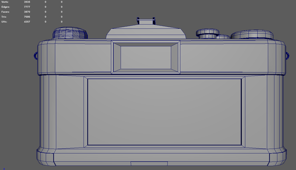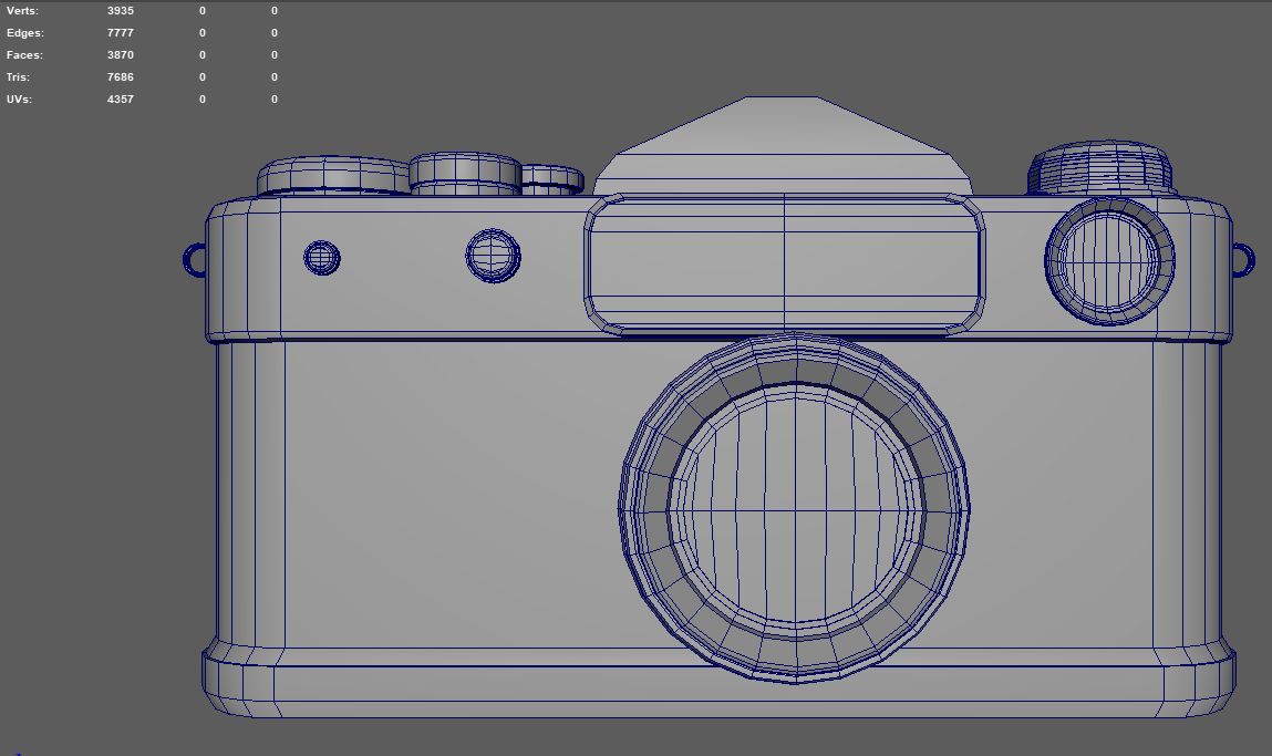 I would add more polygons around the curved areas of the camera to create smoother edges and improve the overall silhouette.